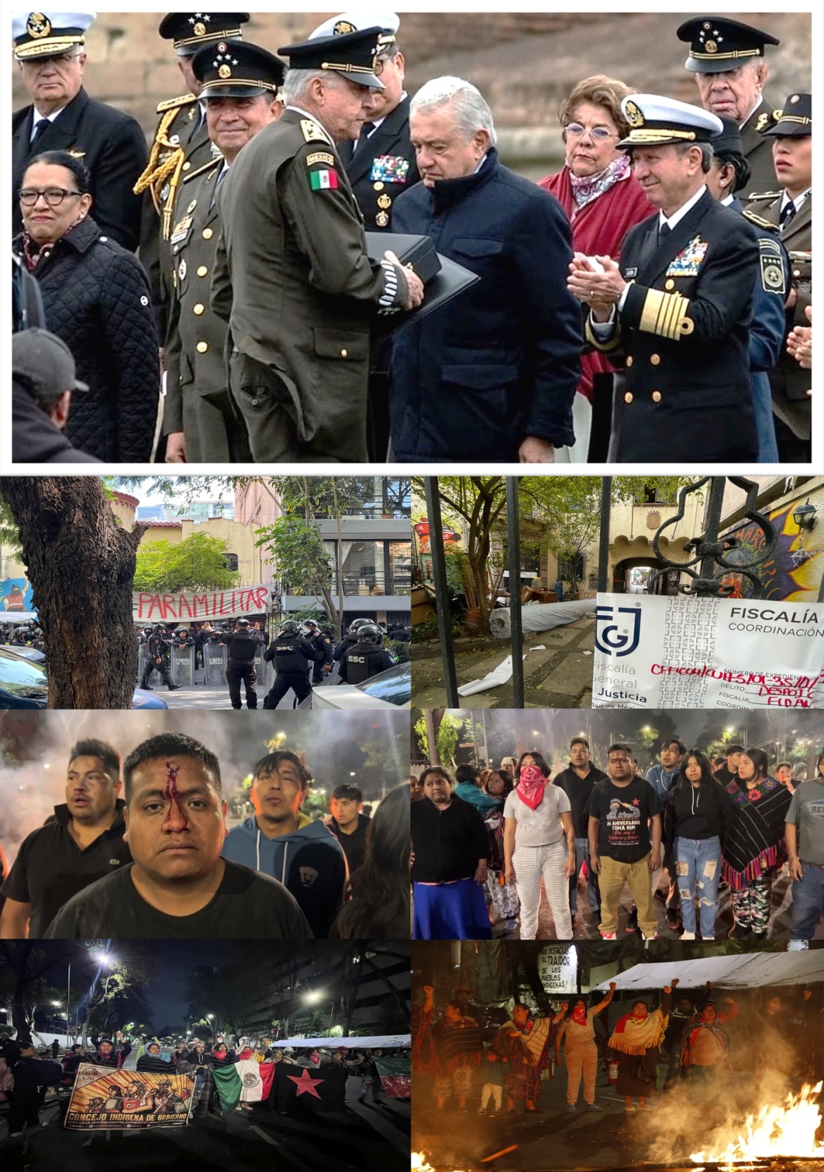 Mientras que el Concejo Indígena de Gobierno y otras luchas hizo hincapié que “la represión bajo el gobierno de MORENA es selectiva, mientras a los implicados en la desaparición de los 43 estudiantes de Ayotzinapa se les condecora, felicita y defiende, a las resistencias de las comunidades originarias del país y de las ciudades se les secuestra, asesina, despoja y golpea a través de cuerpos de granaderos, de grupos paramilitares o de narcos”.
