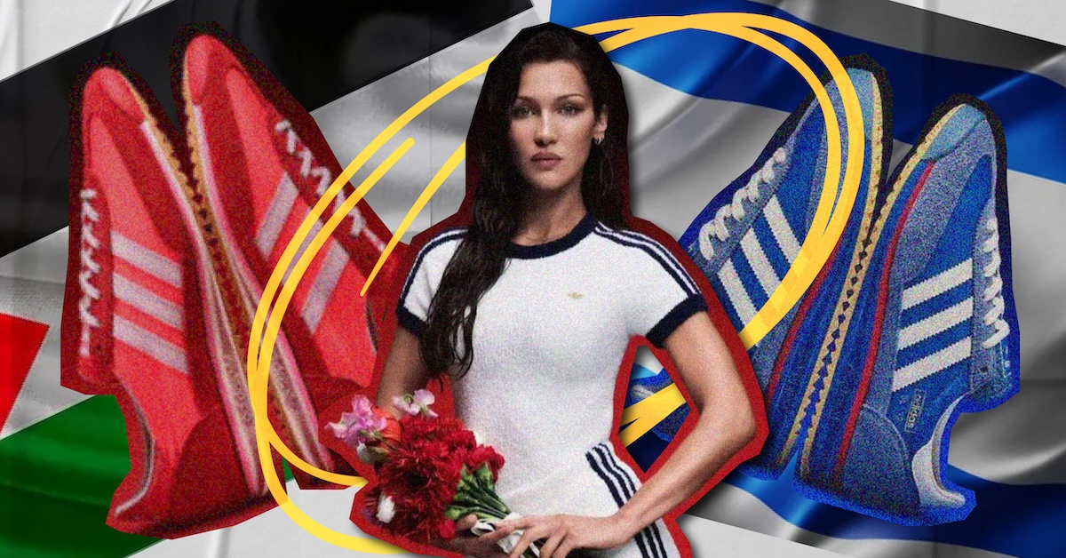 Para celebrar los Juegos Olímpicos de París 2024, Adidas lanzó una campaña con unos tenis conmemorativos de las olimpiadas de Múnich en 1972. La modelo Bella Hadid, de ascendencia palestina (hija del empresario Mohamed Hadid, nacido en Nazaret) fue elegida como de los rostros principales. Sin embargo, su permanencia en la campaña duróp poco debido a la polémica que se generó